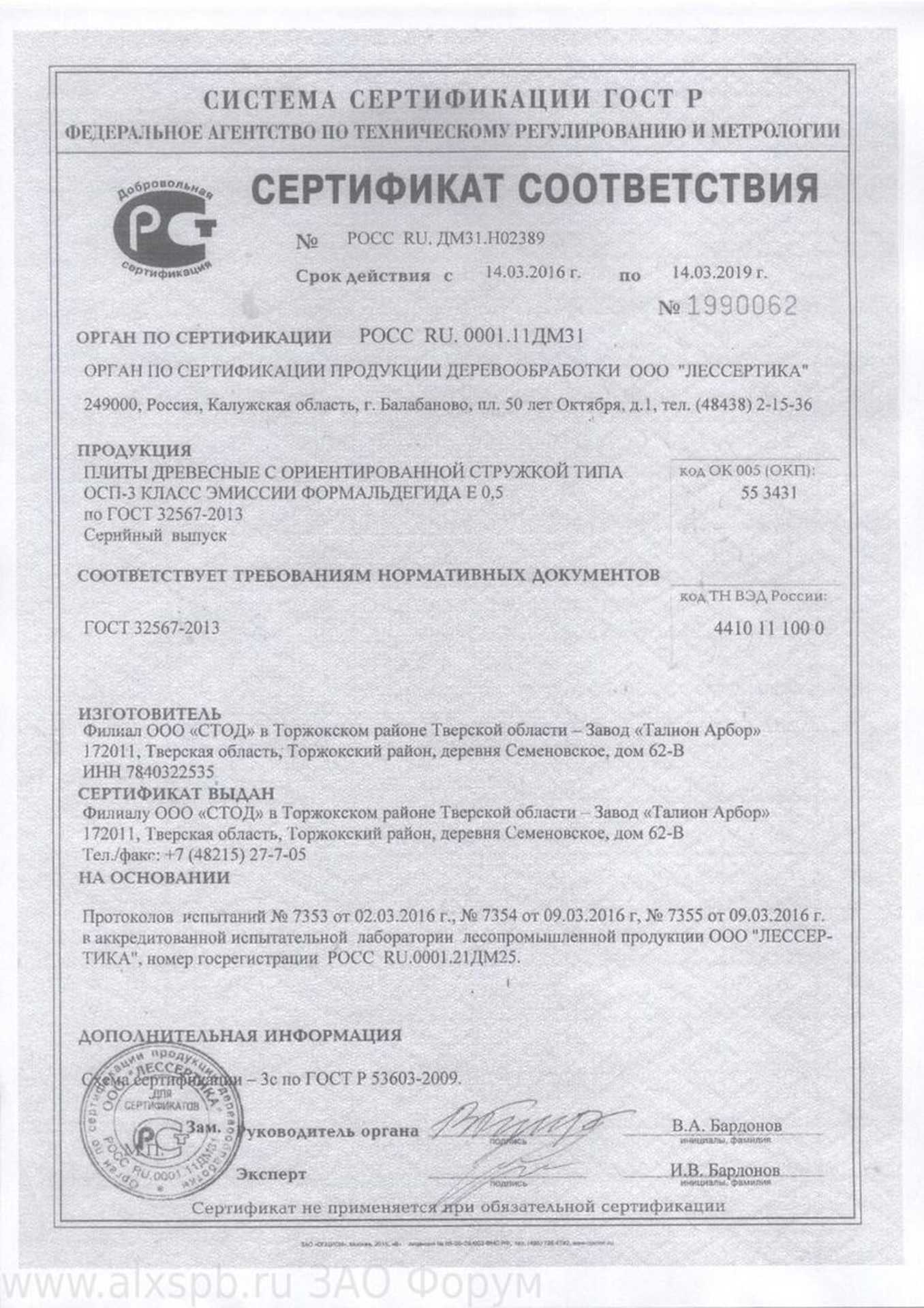 Плита OSB-3 (ОСП) Талион (Ультралам) шпунтованная 15х610х2485 мм